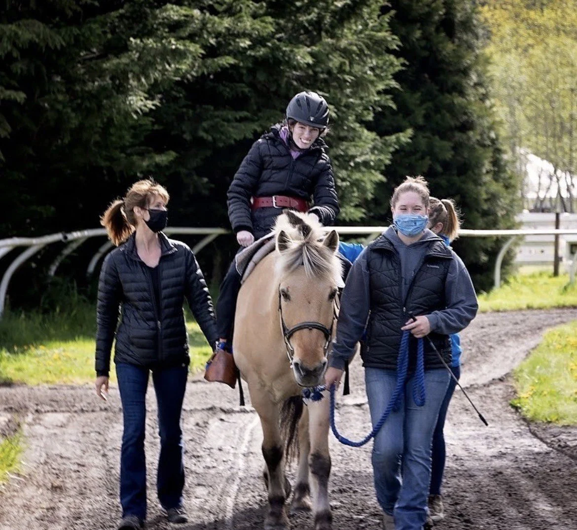I am Colleen, the Little Bit board chair in 2026 and parent of a rider, Jocelyn, who has been riding at Little Bit for almost 30 years. Jocelyn was diagnosed with Cri du Chat Syndrome, which causes her global delays. We feel incredibly lucky to have found a recreation activity that has been a consistent joy in Jocelyn’s life since she was a preschooler. She started sitting taller, gesturing with purpose and steering her walk consistently within the first few years. Now, it is all about the positive energy that radiates from the horses, volunteers, staff, and in Jocelyn’s demeanor on riding days.