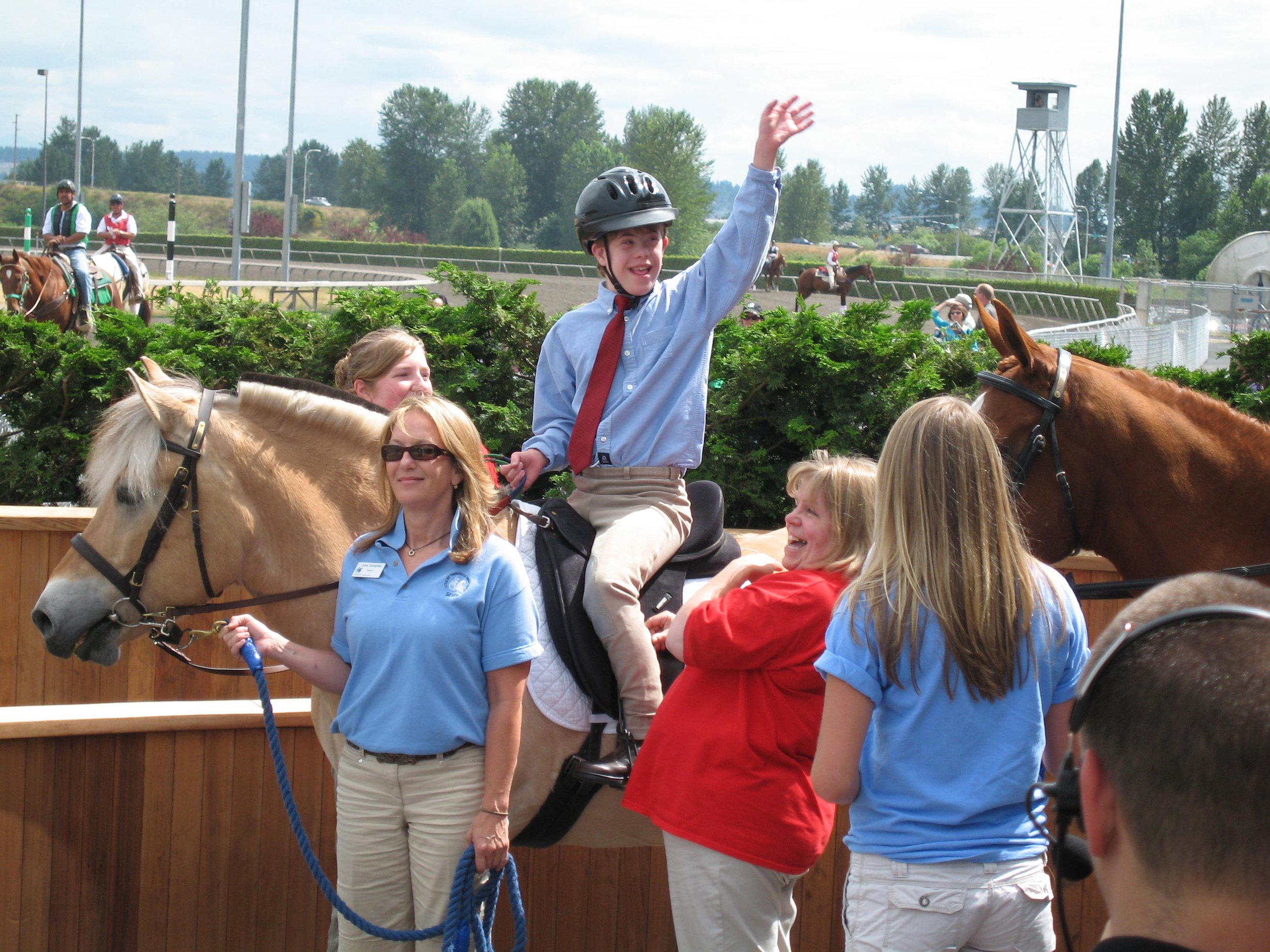 One of the highlights of his riding career has been participating in Little Bit’s demonstrations at Emerald Downs, where riders helped introduce Little Bit and equine-assisted services to those who attended the horse races.