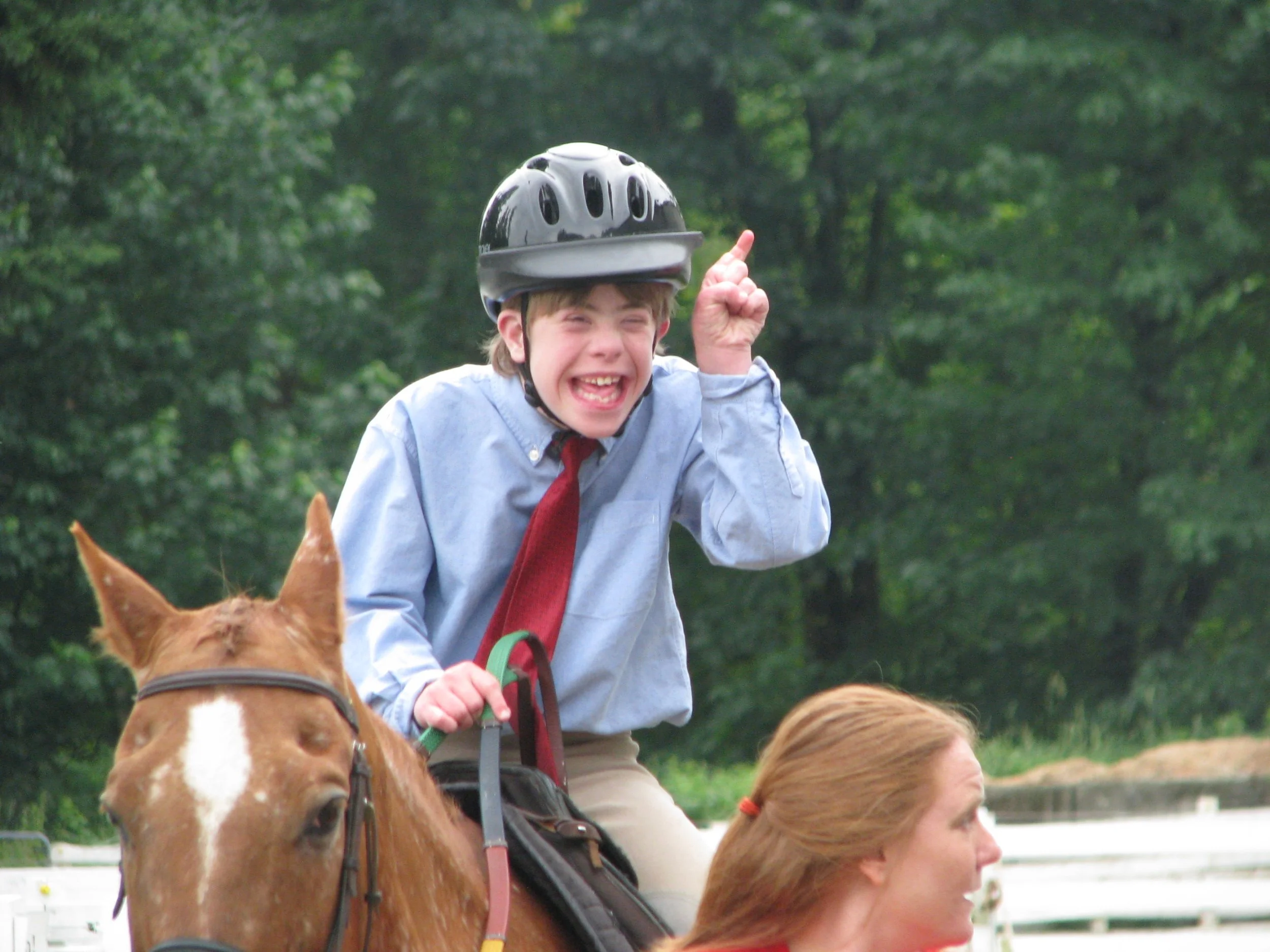 The first thing that you will notice about Eric Angelo is that he is always smiling, despite any of the challenges that have come his way. Eric, born with Down syndrome, is now 30. Eric started at Little Bit when he was only six. At an early age he faced heart surgery and abdominal surgery to remove his gall bladder. His condition resulted in low muscle tone that responded very well to the movement of the horses during those first 10 years of riding. As a teenager, he was described as having a beautiful “seat,” or the posture a rider has on horseback.
