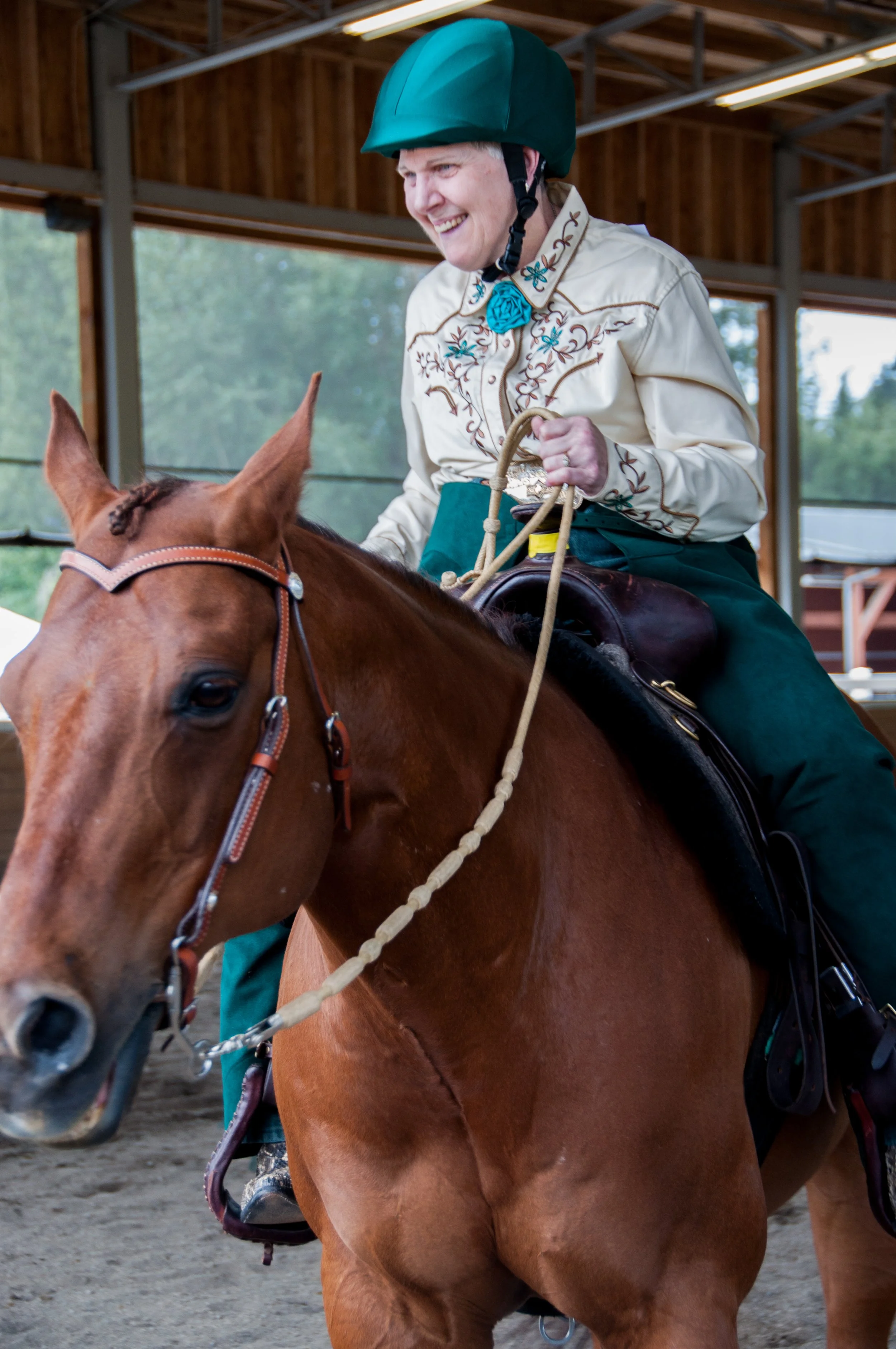 Not every rider has horse experience before coming to Little Bit. But for Karol, Little Bit was a way to gain strength in activities of daily living such as driving, and also to continue to do something she already loved—riding. She loved participating in Little Bit horse shows, including dressing up for the big day. Her sister remembers Karol bringing home ribbons from the shows, “finding a place in the crowded wall of ribbons” where she could hang up the new ones. In her earlier years at Little Bit, Karol and her friends traveled for horse shows, including events in Canada and on the east coast, winning awards there too.