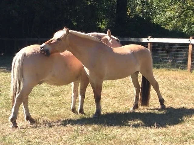 Outside of client work, I could be a different version of me! I could gallop like the wind, buck like a colt on spring grass, and play enthusiastically… sometimes too enthusiastically for some of my herd mates’ preferences. I never understood why some horses didn’t want to play… it’s so fun! Ronan did though. He was my buddy for bite face, naps, running our paddocks, and shouting loud for food! One night, long after dark, a familiar scent drifted into the barn. My sister Zoey. I hadn’t seen her since we were three. I called out before I even saw her. Family is family, even after years apart.